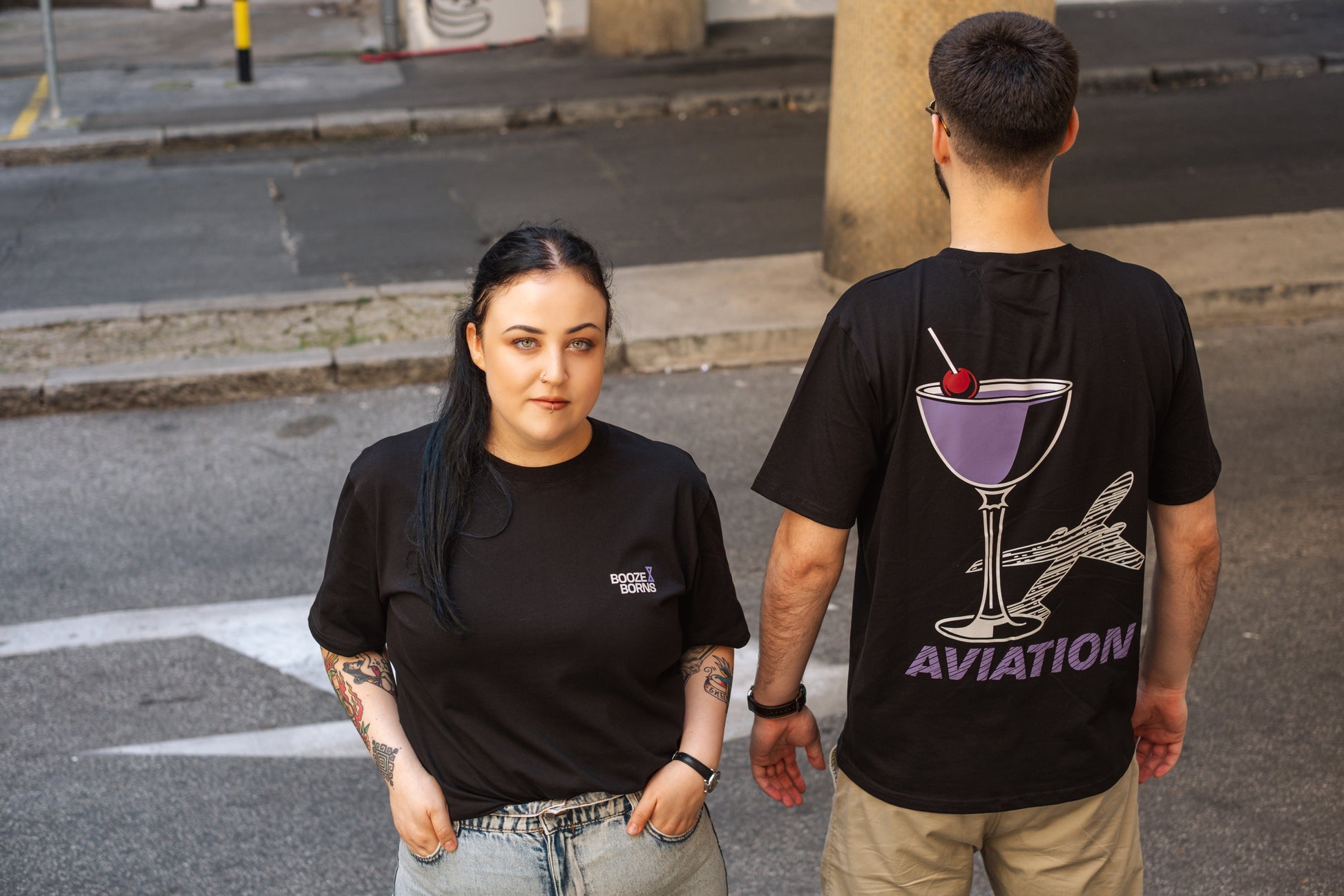 Aviation je koktel koji spaja eleganciju i misterioznost, a ova majica radi isto. Boozeborns Aviation donosi kombinaciju čistog dizajna i detalja koji otkrivaju više od običnog komada odeće. To je priča o slobodi, letu iznad proseka i stilu koji ima svoju težinu.